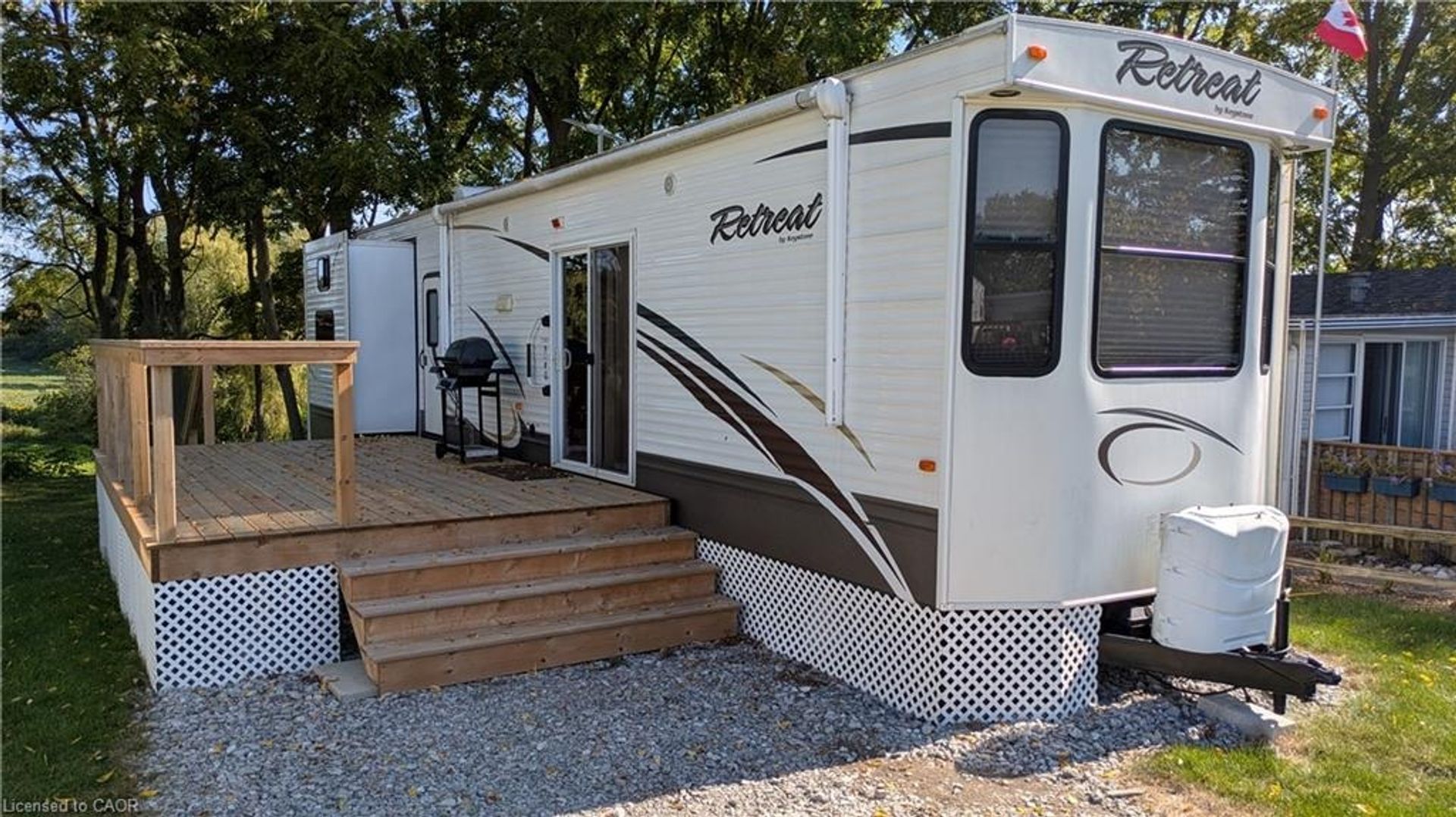 This 2014 39 foot Keystone retreat mobile home is in excellent move in condition and ready for you to enjoy living near the lake in the summer. Spacious kitchen with gas stove, fridge and microwave, spacious main bedroom with lots of wall cabinets to store all kinds of stuff you'll need for your days at the course. The second bedroom features 2 pull out bunk-beds or use as a spare room with all kinds of possibilities. It even has 2 bathrooms. This unit sits on a leased lot at… Stark's Golf Course in Port Rowan, what better place to spend your summers than a golf course. The owner is offering immediate occupancy, allowing you to get ready before next summer. Check this one out today.