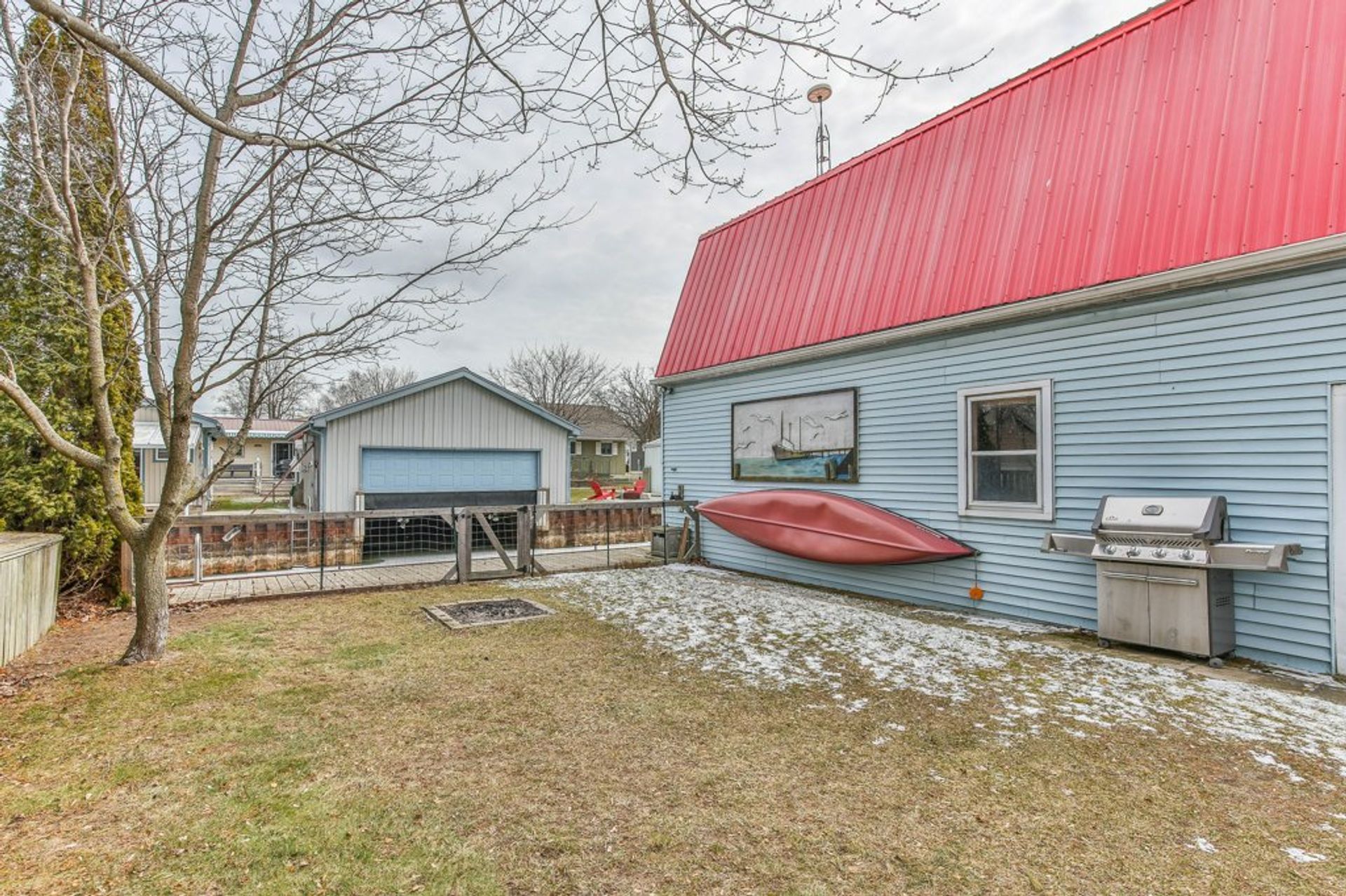 Waterfront property with channel access and double boat house